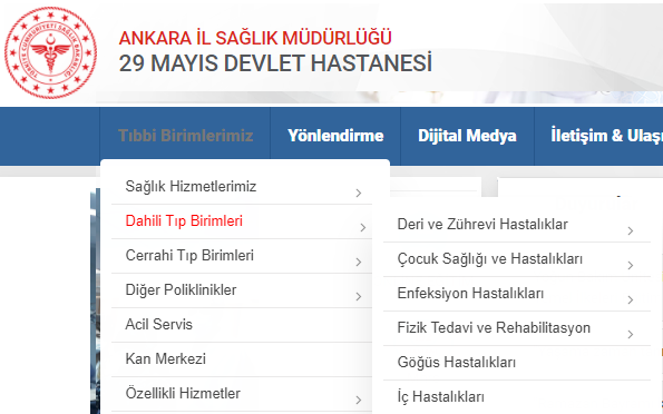 - ADIM: https://29mayisdh.saglik.gov.tr/?_Dil=1 adresini tıklayarak Ankara 29 Mayıs Devlet Hastanesi Resmi web sayfasına giriş yapınız. Giriş yaptığınız Ana Sayfanın üst kısmına menü kısmına bakınız.