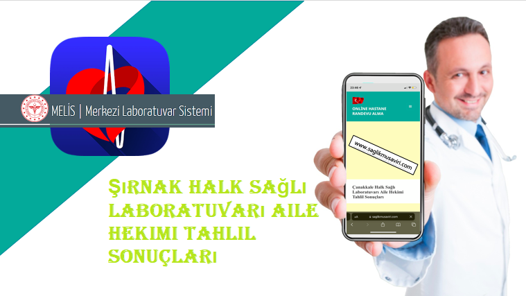 Şırnak Halk Sağlı Laboratuvarı Aile Hekimi Tahlil Sonuçları. Şırnak İl sağlık Müdürlüğü Aile Sağlığı Merkezlerinde Aile hekimleri tarafından yapılan kan tahlili sonuçlarını aşağıdaki linki tıklayarak LBYS sisteminden öğrenebilir veya Sağlık Bakanlığı MELİS Merkezi Laboratuvar Sisteminden giriş yaparak öğrenebilirsiniz.