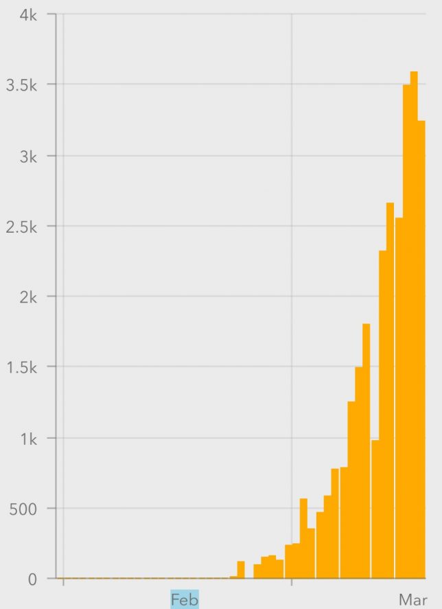 Son zamanlarda en kötü corona virüs tablosunu yaşayan italya’da ise vaka hızı (salgın eğrisi) aşağıda görüldüğü gibidir.